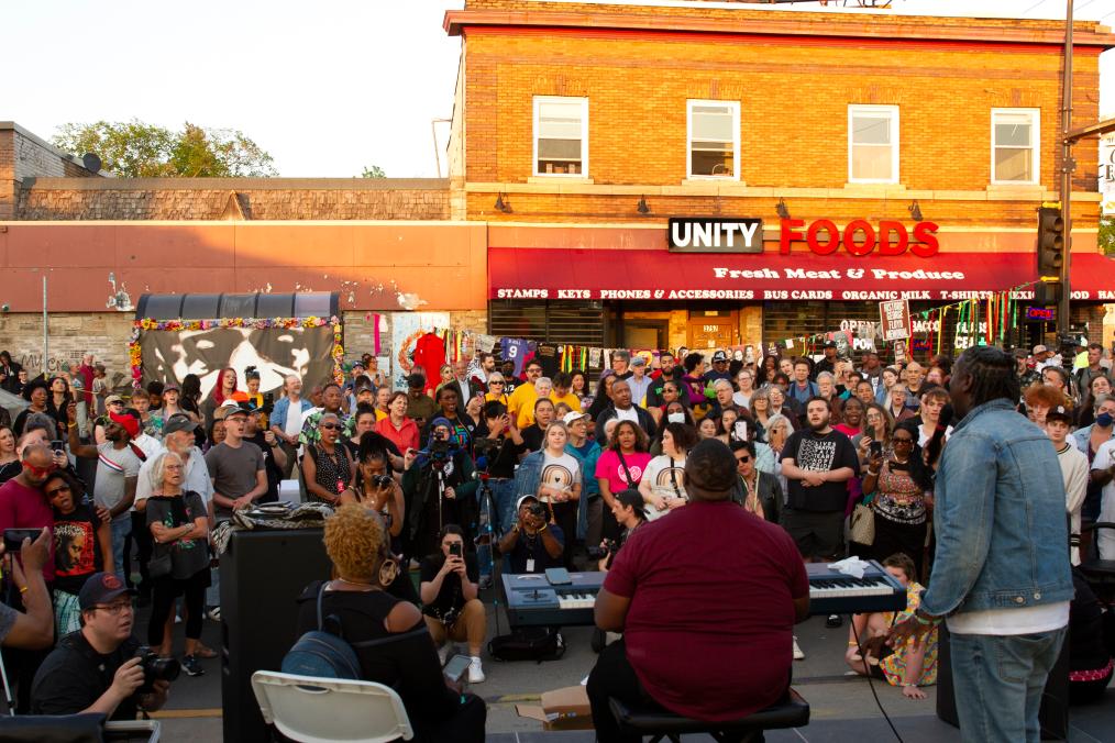 2023年5月25日,在美國明尼蘇達州明尼阿波利斯市,人們參加哀悼活動,紀念弗洛伊德遇害三周年。2020年5月25日,“無法呼吸”的非洲裔男子喬治·弗洛伊德死于白人警察膝下,成為美國人權史上的恥辱一頁。新華社發(fā)(比利·布里格斯攝)