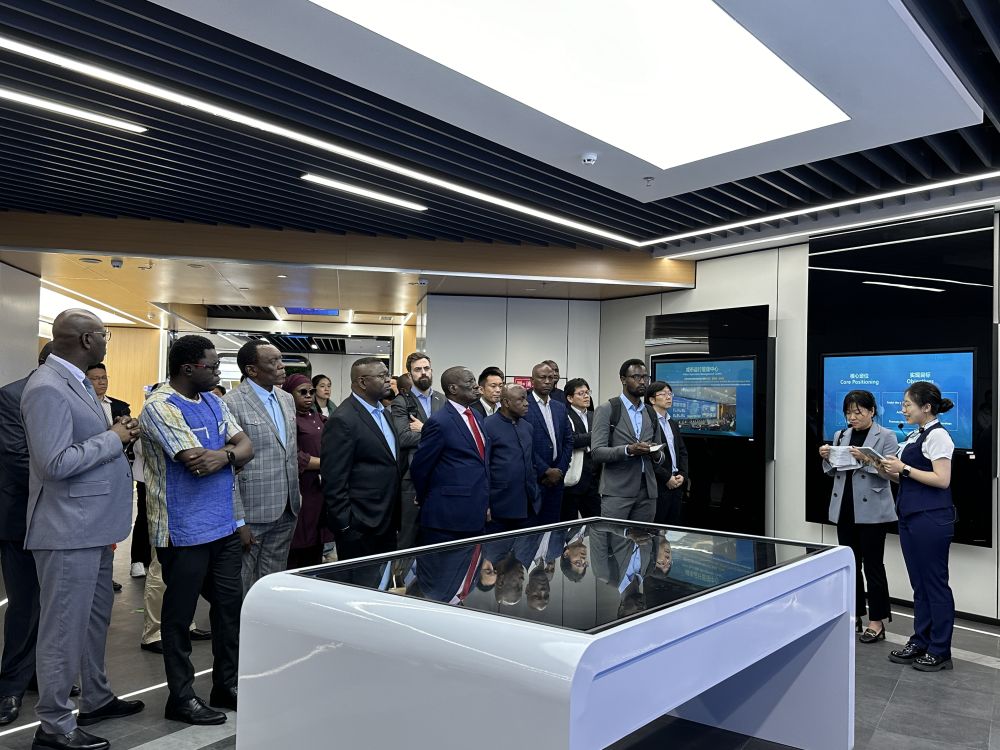 尼日利亞駐上??傤I(lǐng)館商務(wù)專員穆哈穆德·哈桑一邊聽著介紹,一邊拿出手機(jī)展示尼日利亞的一處地形,詢問(wèn)工程師對(duì)橋梁建設(shè)的建議以及橋梁養(yǎng)護(hù)經(jīng)驗(yàn)。