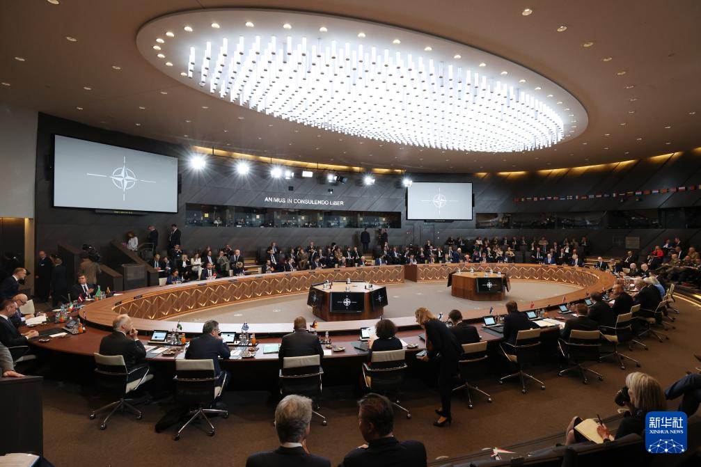 這是6月14日在比利時布魯塞爾北約總部拍攝的北約防長會現(xiàn)場。新華社記者 趙丁喆 攝