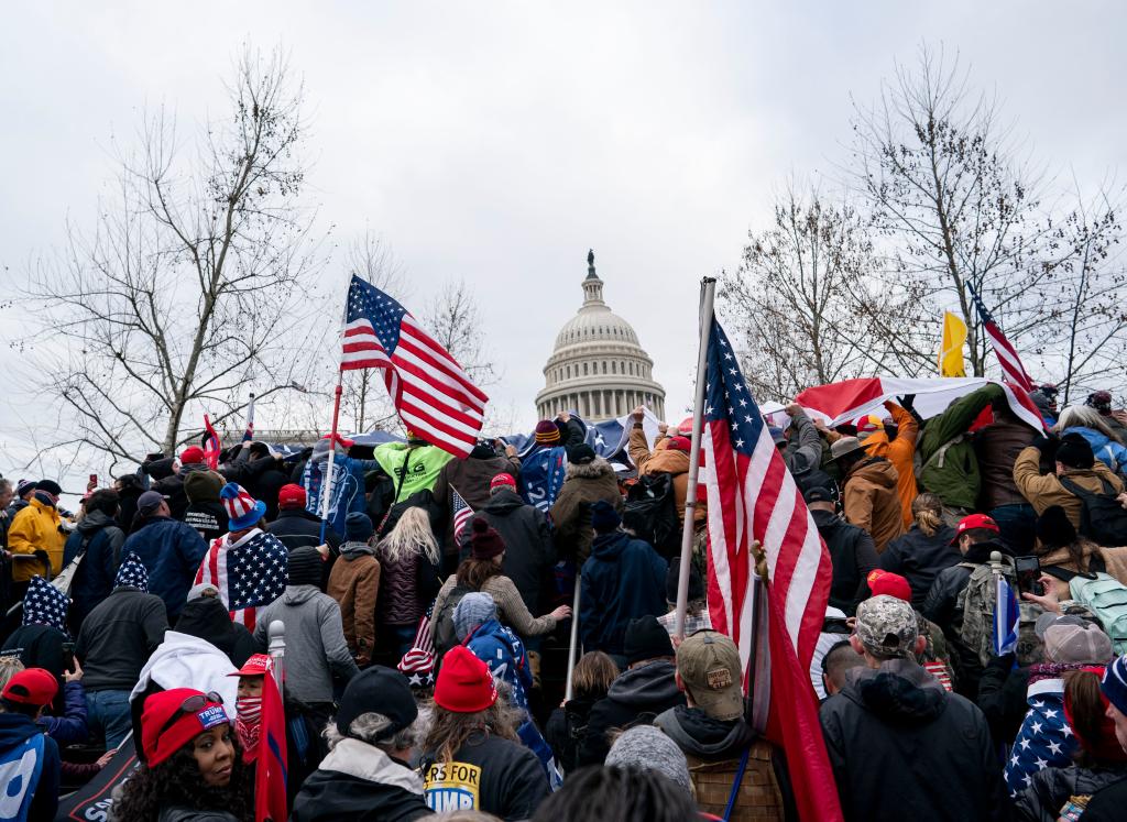 2021年1月6日,在美國(guó)首都華盛頓,時(shí)任總統(tǒng)特朗普的支持者在國(guó)會(huì)外舉行示威游行,部分示威者沖進(jìn)國(guó)會(huì)大廈,與警方發(fā)生沖突,造成一人死亡,當(dāng)時(shí)正在舉行的認(rèn)證大選結(jié)果的國(guó)會(huì)參眾兩院聯(lián)席會(huì)議也被迫中斷。新華社記者劉杰攝