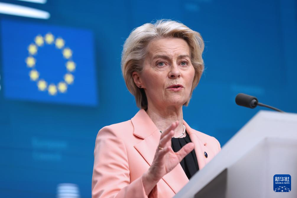 這是3月21日在比利時(shí)布魯塞爾拍攝的歐盟委員會(huì)主席馮德萊恩出席新聞發(fā)布會(huì)。新華社記者 趙丁喆 攝