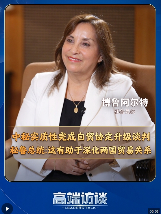 6月28日,中國與秘魯宣布實(shí)質(zhì)性完成自貿(mào)協(xié)定升級談判。秘魯總統(tǒng)博魯阿爾特在接受總臺《高端訪談》專訪時表示,中國是秘魯?shù)谝淮筚Q(mào)易伙伴,兩國新簽署的諒解備忘錄,將有助于深化兩國貿(mào)易關(guān)系,進(jìn)一步加強(qiáng)雙邊關(guān)系。