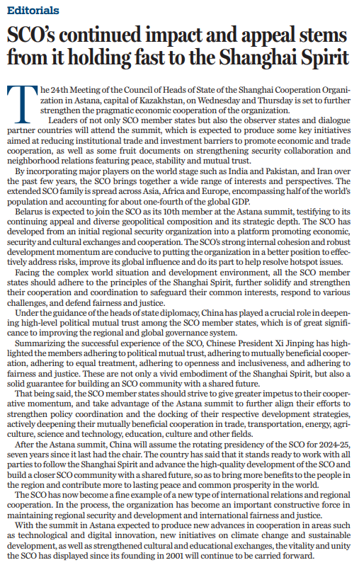 原文標(biāo)題:SCO's continued impact and appeal stems from it holding fast to Shanghai Spirit