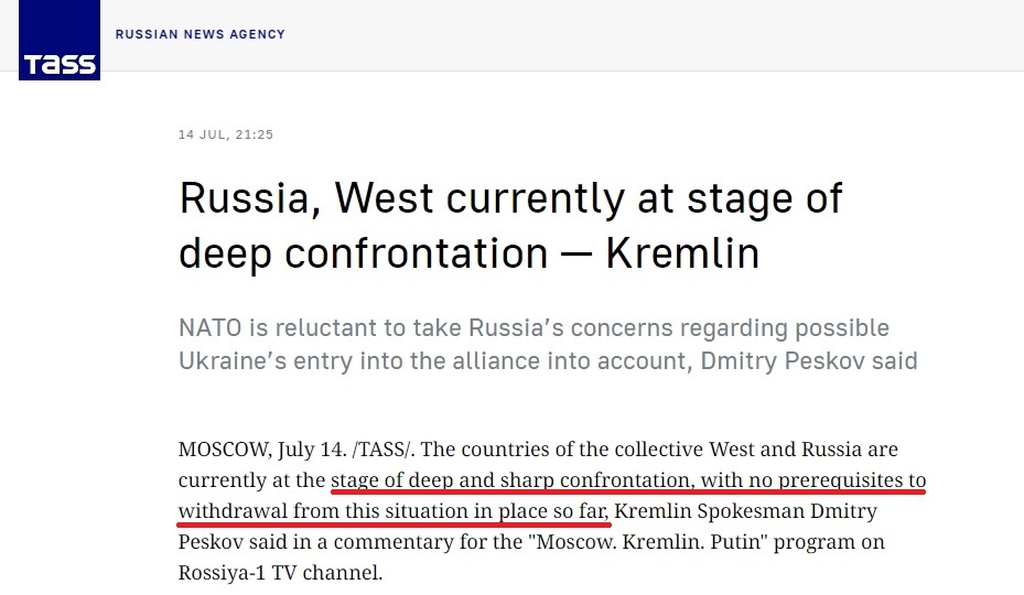 這是當(dāng)?shù)貢r(shí)間 14日,俄羅斯總統(tǒng)新聞秘書佩斯科夫針對(duì)美國日前發(fā)出的“導(dǎo)彈威脅”所做出的最新表態(tài)。