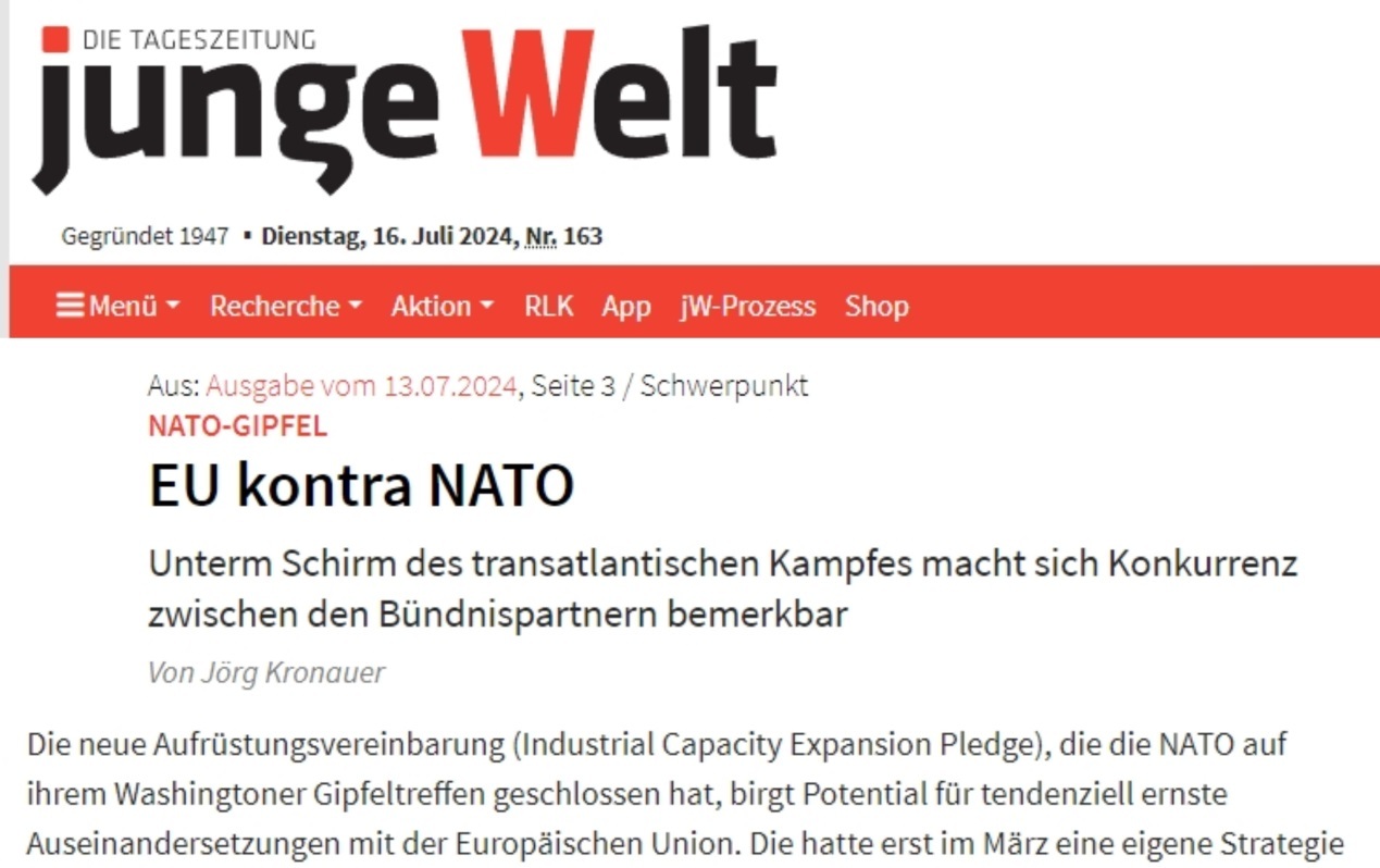 諷刺的是,為了借這場(chǎng)危機(jī)重振歐洲軍工產(chǎn)業(yè)、擺脫對(duì)美依賴,歐盟委員會(huì)今年3月剛剛公布了歐盟首份《歐洲國防工業(yè)戰(zhàn)略》。但有德國媒體警告,北約華盛頓峰會(huì)上達(dá)成的《工業(yè)能力擴(kuò)張承諾協(xié)議》或?qū)⑹箽W盟與北約爆發(fā)嚴(yán)重爭(zhēng)端。