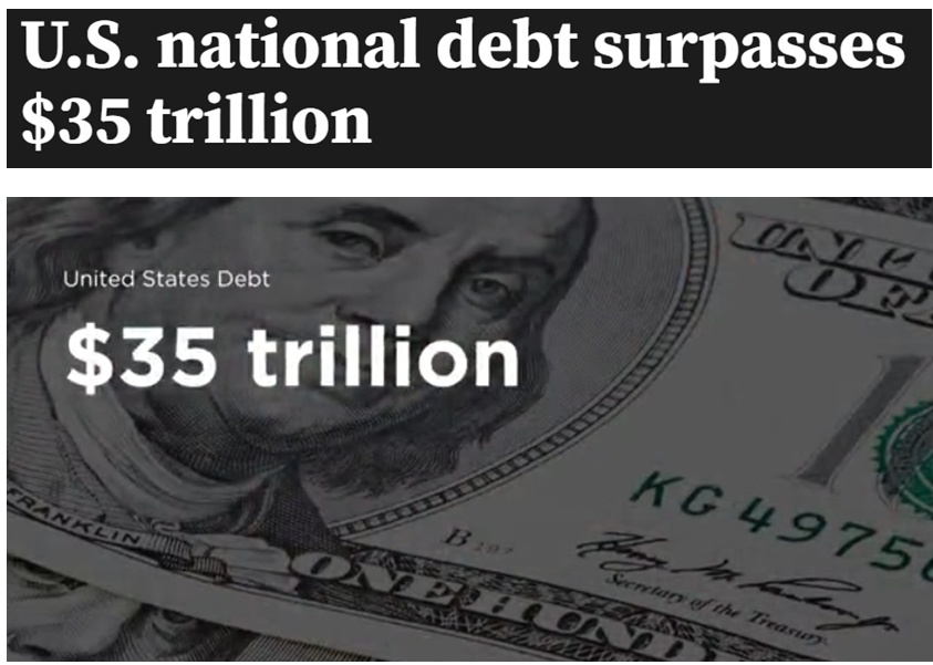 根據(jù)美國財政部近日發(fā)布的最新數(shù)據(jù),美國國債已超35萬億美元。目前,美國債務總額比七國集團中其他六國的國債總和還要多出15%。
