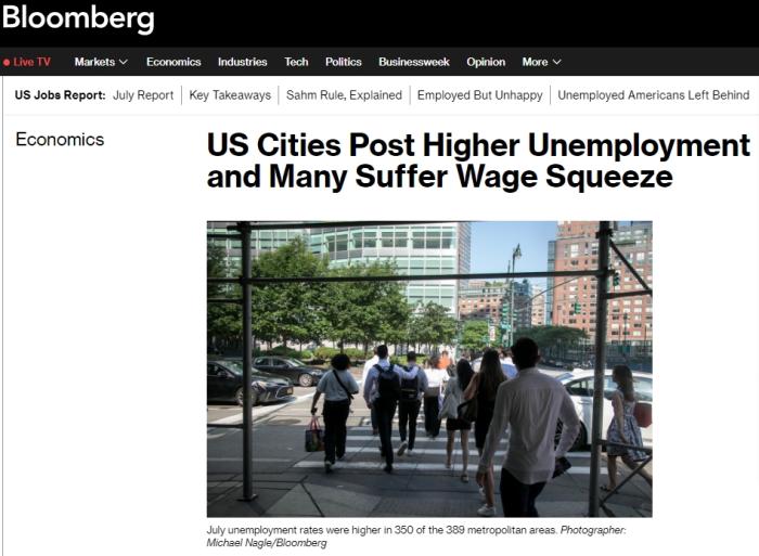 據(jù)報(bào)道,與2023年同期相比,389個(gè)大都會(huì)區(qū)中有350個(gè)的失業(yè)率在7月上升。在包括密爾沃基、明尼阿波利斯-圣保羅和舊金山等2010年普查人口數(shù)達(dá)到或超過100萬的八個(gè)大都會(huì)區(qū),2024年7月的就業(yè)人數(shù)低于2019年7月同期。