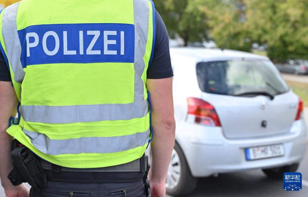 9月10日,在位于德國(guó)和波蘭邊境的德國(guó)城市奧得河畔法蘭克福,警察在邊檢站執(zhí)勤。新華社記者 任鵬飛 攝