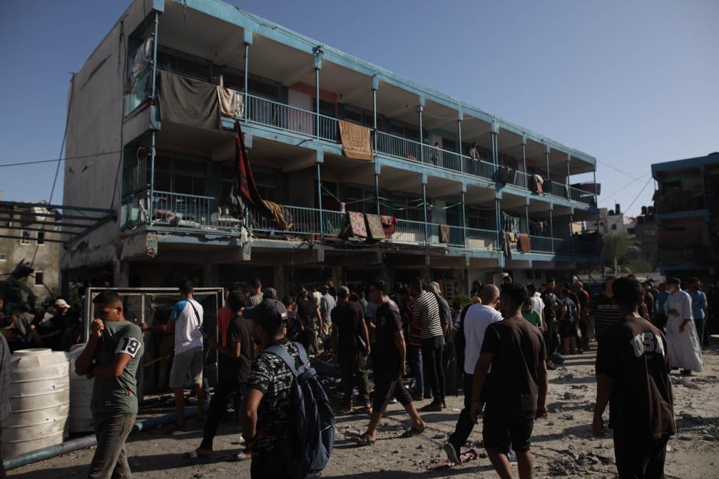 9月11日,在加沙地帶中部努賽賴特難民營(yíng),人們聚集在以軍轟炸后的學(xué)校廢墟附近。新華社發(fā)(馬爾萬(wàn)·達(dá)烏德攝)