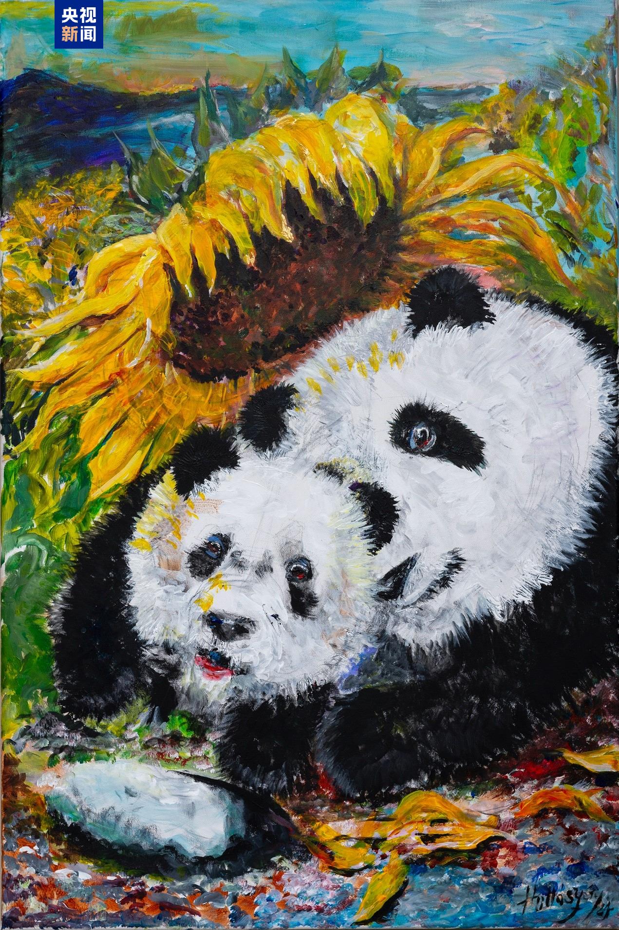 受到旅美大熊貓“云川”和“鑫寶”的啟發(fā),美國(guó)著名雕塑家、畫家尤里·霍洛西為“云中錦書”創(chuàng)作《沐浴陽光的和諧瞬間》。