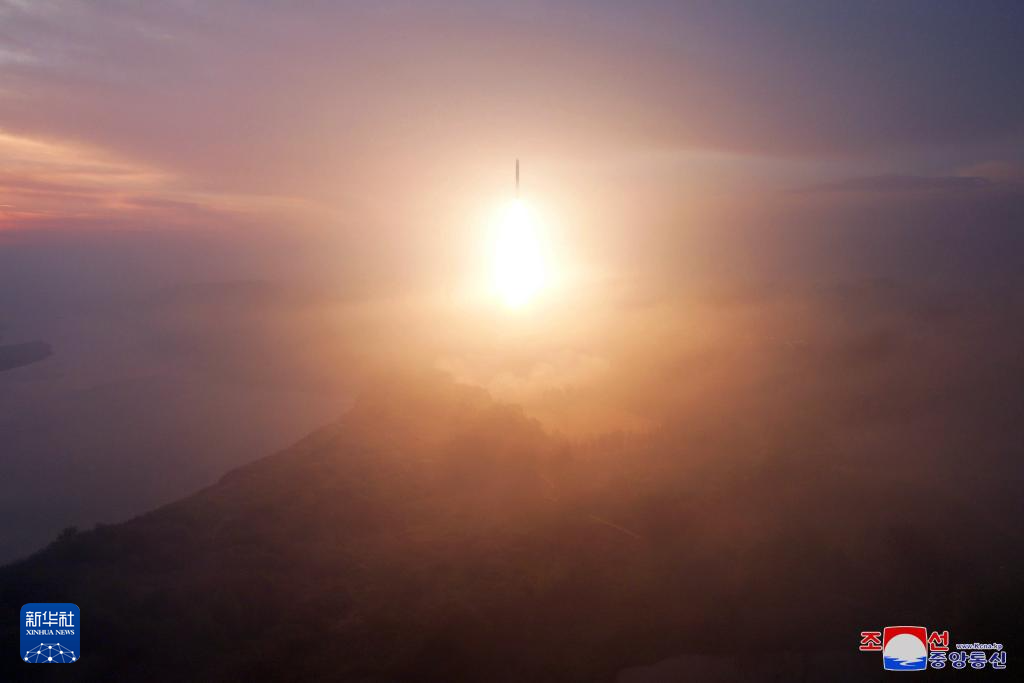 這張朝中社發(fā)布的照片顯示的是導(dǎo)彈發(fā)射升空。新華社/朝中社
