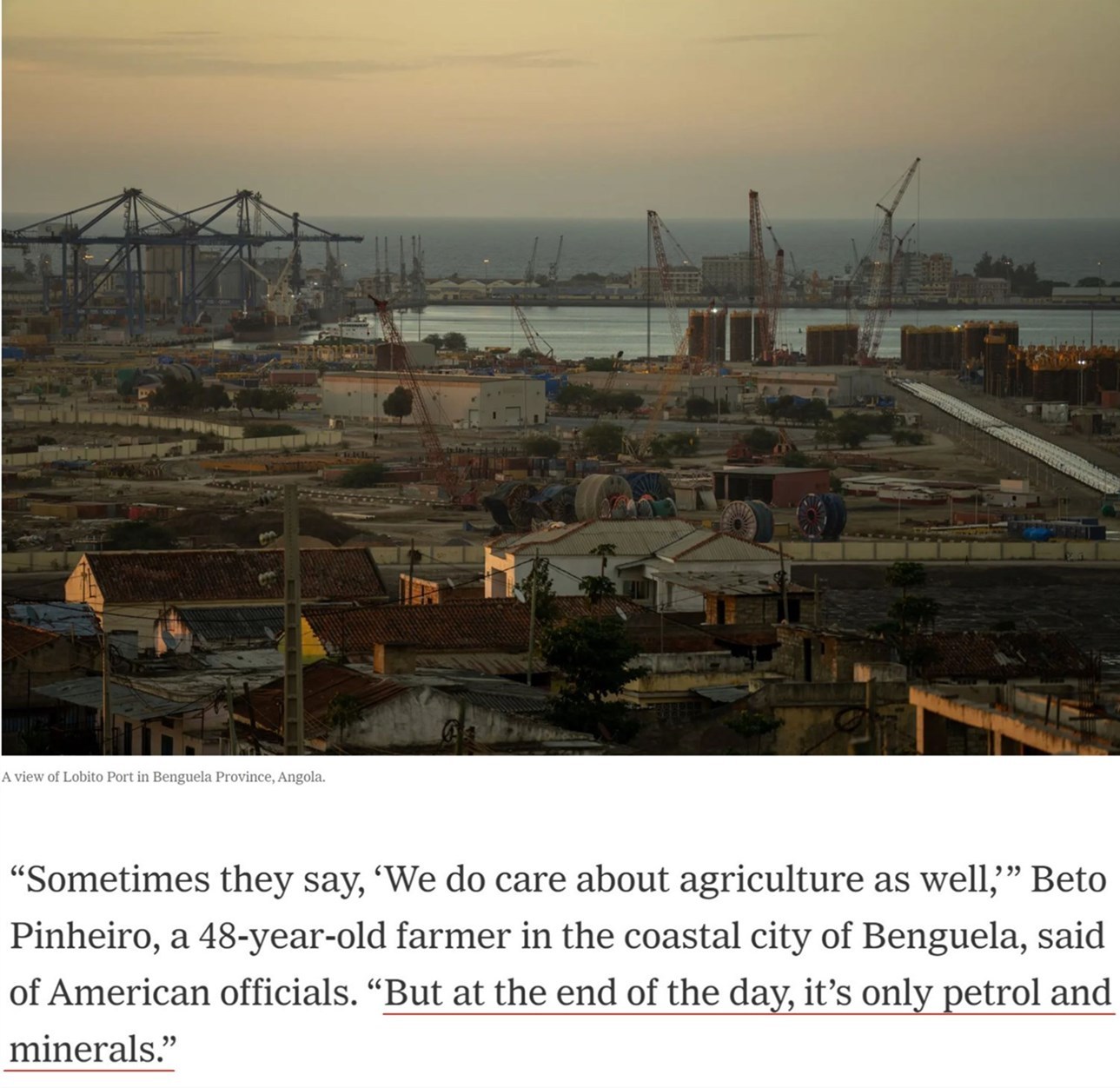 安哥拉位于非洲西南部,西臨大西洋,東接贊比亞和剛果民主共和國(guó)、即剛果(金)。而這兩個(gè)國(guó)家擁有大量的銅、鈷和其他原材料礦藏,這些礦藏因其對(duì)現(xiàn)代國(guó)民經(jīng)濟(jì)的重要性而被視為“關(guān)鍵礦產(chǎn)”。而這正是對(duì)美國(guó)的戰(zhàn)略吸引力所在。