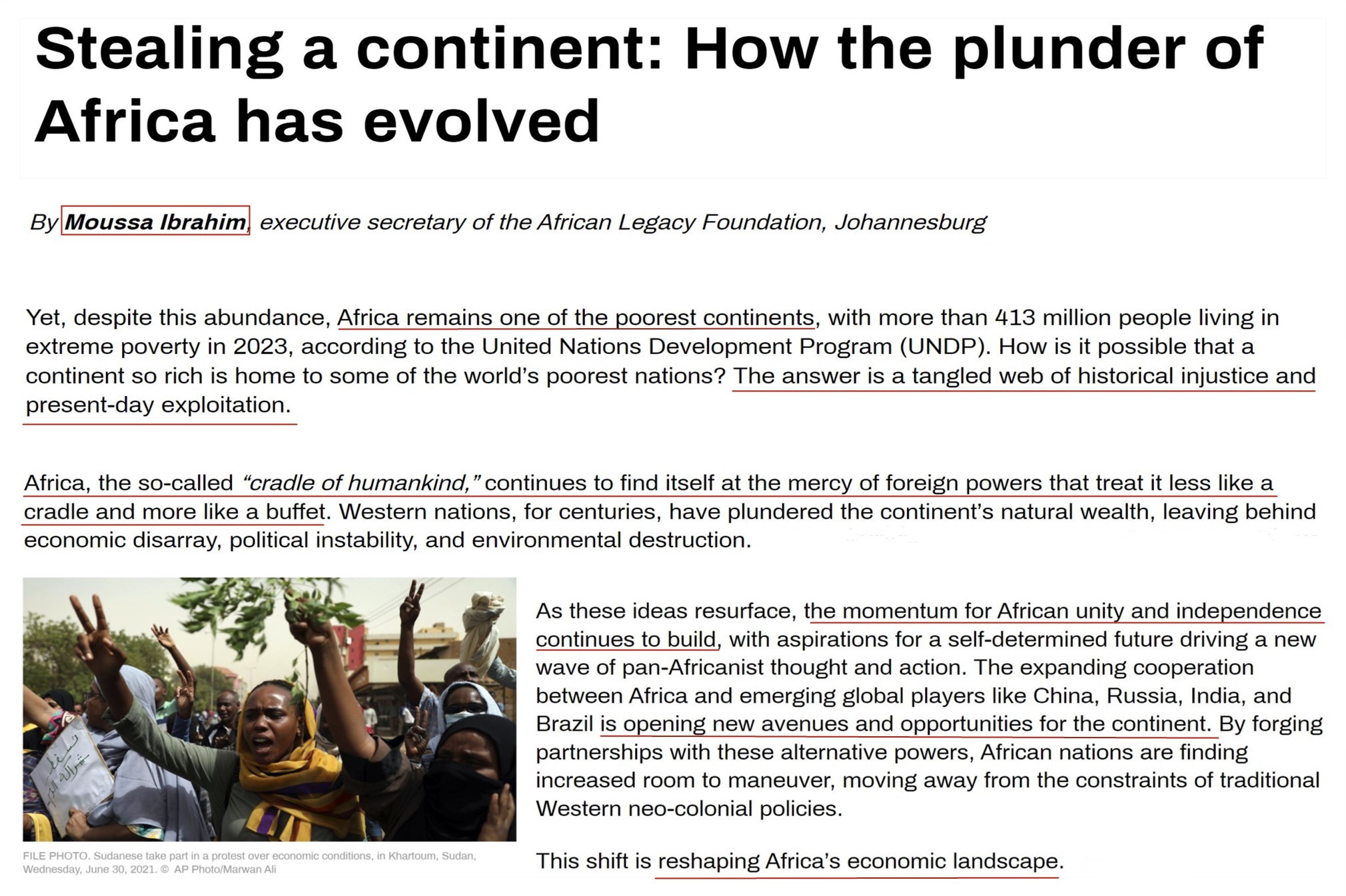 “這是外國(guó)勢(shì)力剝奪非洲國(guó)家資源的又一例證”
