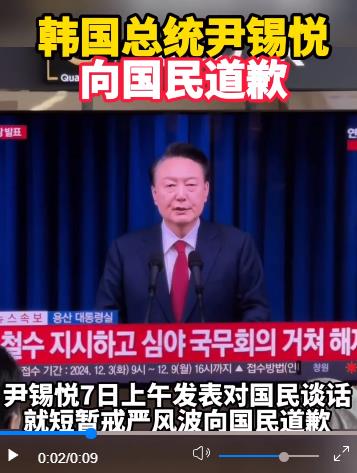 韓國總統(tǒng)尹錫悅7日上午發(fā)表對國民談話,就短暫戒嚴風波向國民道歉。韓國執(zhí)政黨黨首韓東勛當天對媒體表示,總統(tǒng)尹錫悅盡早下臺不可避免。(記者:陸睿;視頻:付一鳴)