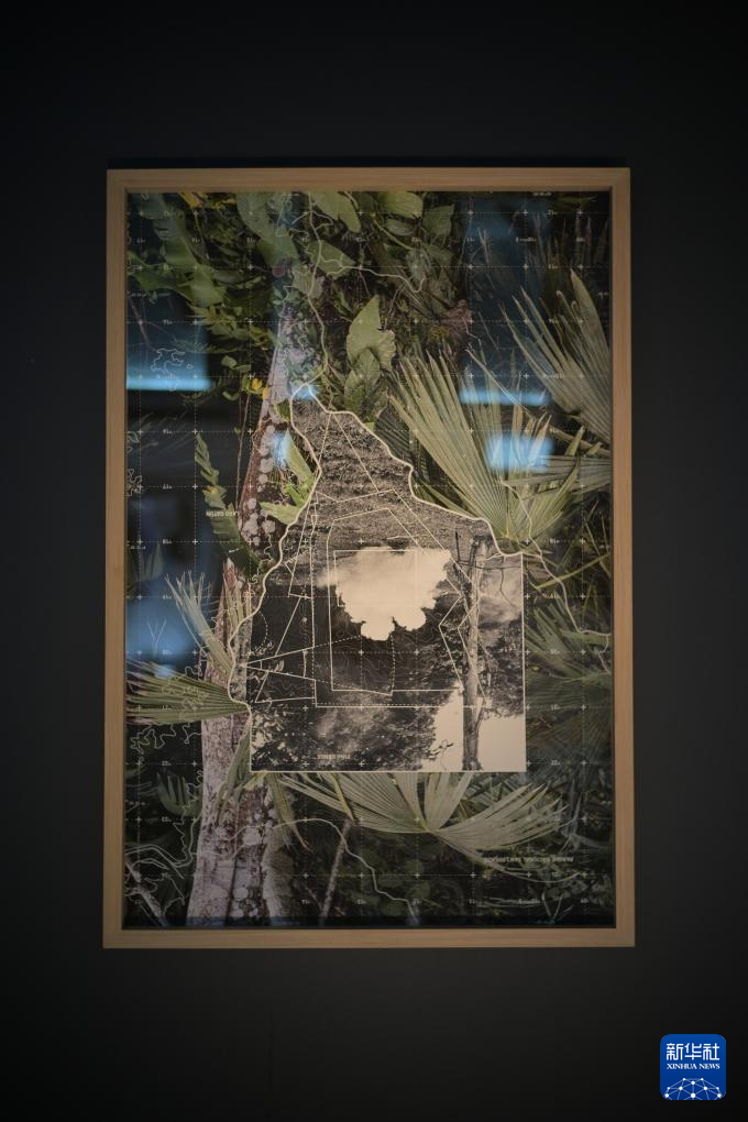這是12月18日在巴拿馬首都巴拿馬城的巴拿馬運(yùn)河博物館“未爆的炸彈”展覽上拍攝的一幅展品。新華社記者 陳昊佺 攝