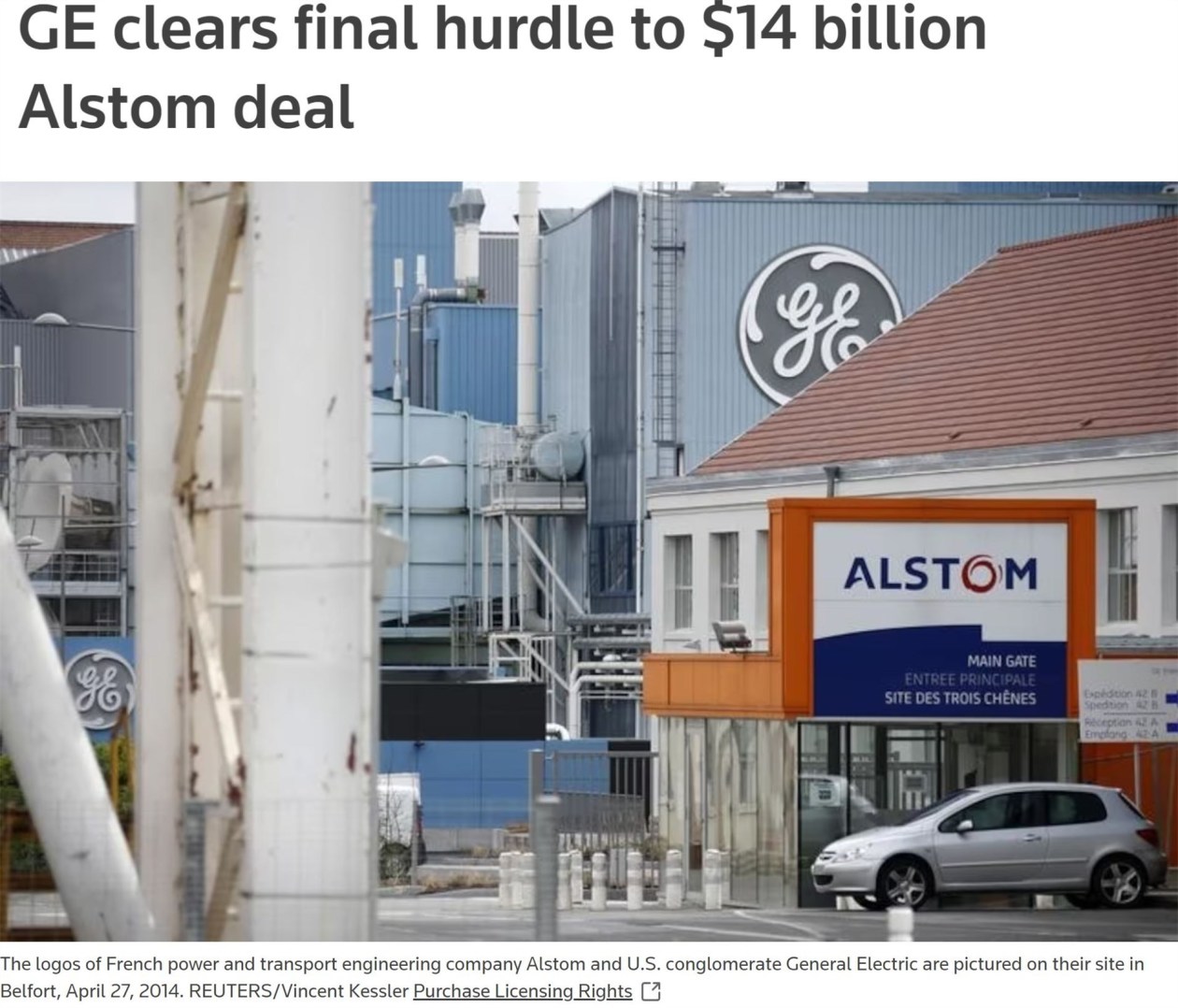 △路透社:2015年9月,美國(guó)通用電氣公司掃清了以140 億美元收購(gòu)阿爾斯通電力設(shè)備業(yè)務(wù)的最后障礙。