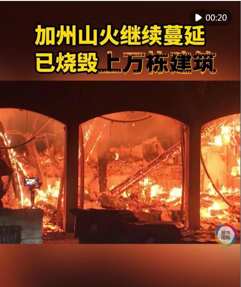 美國(guó)加利福尼亞州洛杉磯地區(qū)的山火仍在劇烈燃燒。據(jù)當(dāng)?shù)卣?,截?1日,山火已造成16人死亡,另有至少13人失蹤。