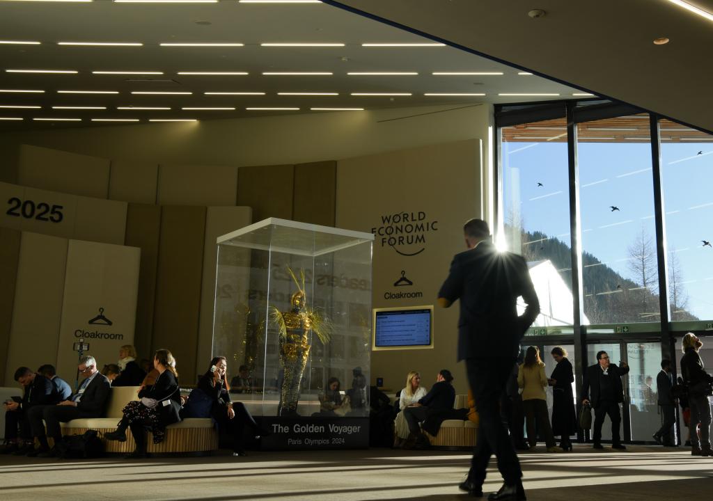 1月21日,在瑞士達沃斯,與會者參加世界經(jīng)濟論壇2025年年會。新華社記者連漪攝