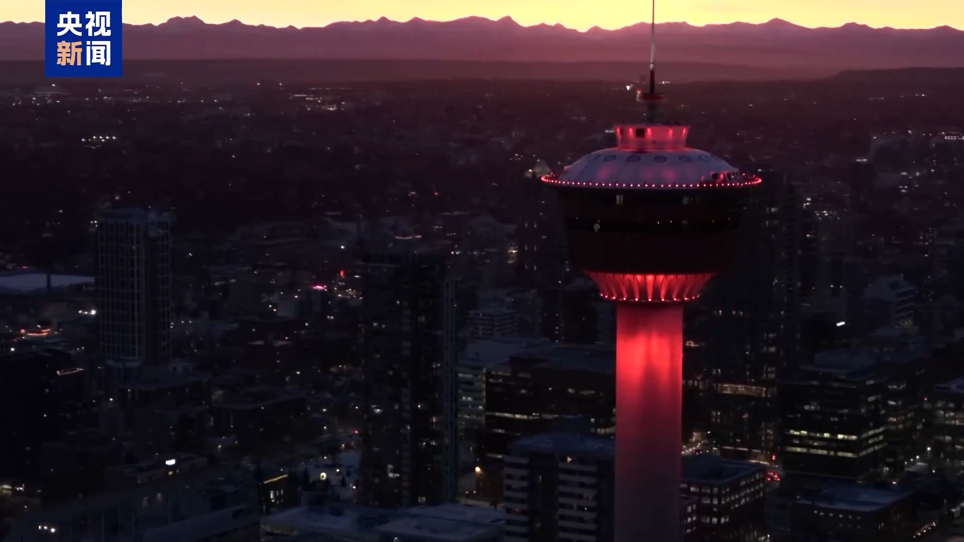 加拿大艾伯塔省卡爾加里市地標(biāo)建筑——卡爾加里塔,也在除夕和初一點亮“中國紅”。伴隨著夜幕降臨,卡爾加里塔身披紅光,營造出濃濃的節(jié)慶氛圍。