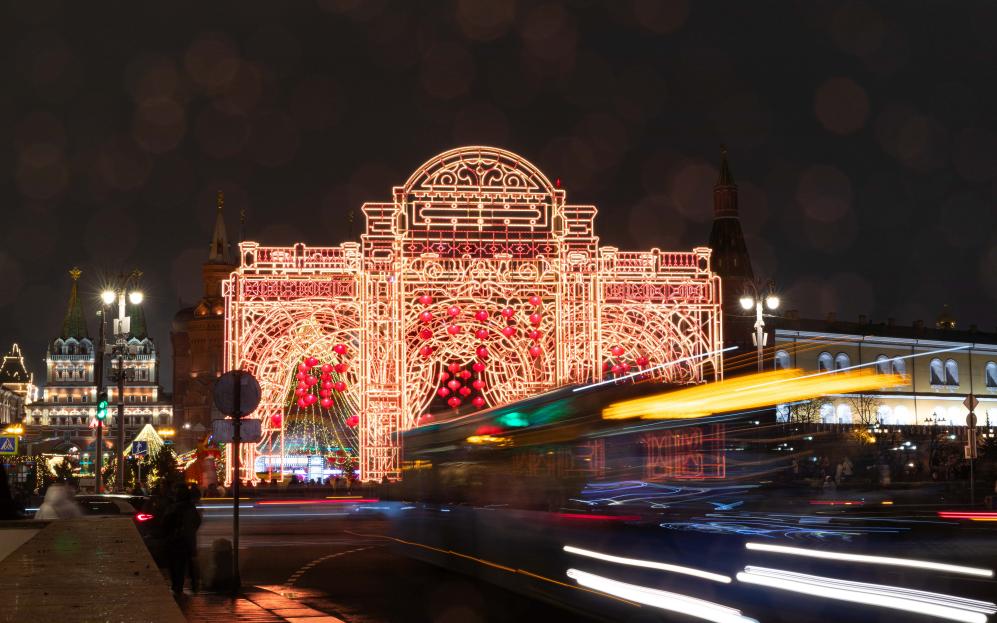 莫斯科春節(jié)慶祝活動(dòng)開幕恰逢除夕。在開幕式舉辦地——莫斯科市中心的馬涅什廣場,節(jié)慶彩色串燈搭配成百上千的紅燈籠裝點(diǎn)一新;臨時(shí)搭建的房屋四周懸掛的“?!弊趾椭袊Y(jié),將“年味兒值”拉滿;美食攤位升騰起裊裊炊煙,飄出的香氣令人垂涎欲滴。