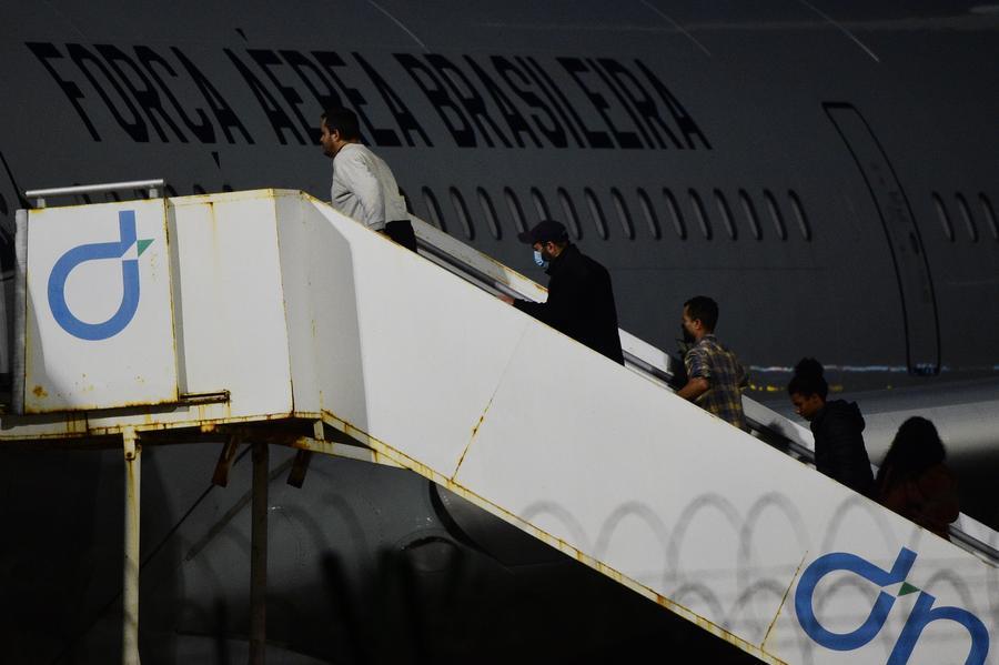 2025年2月7日,在巴西東北部塞阿拉州福塔萊薩市,被美國驅(qū)逐出境的第二批巴西非法移民登上一架巴西空軍飛機(jī)。新華社發(fā) 盧西奧·塔沃拉 攝