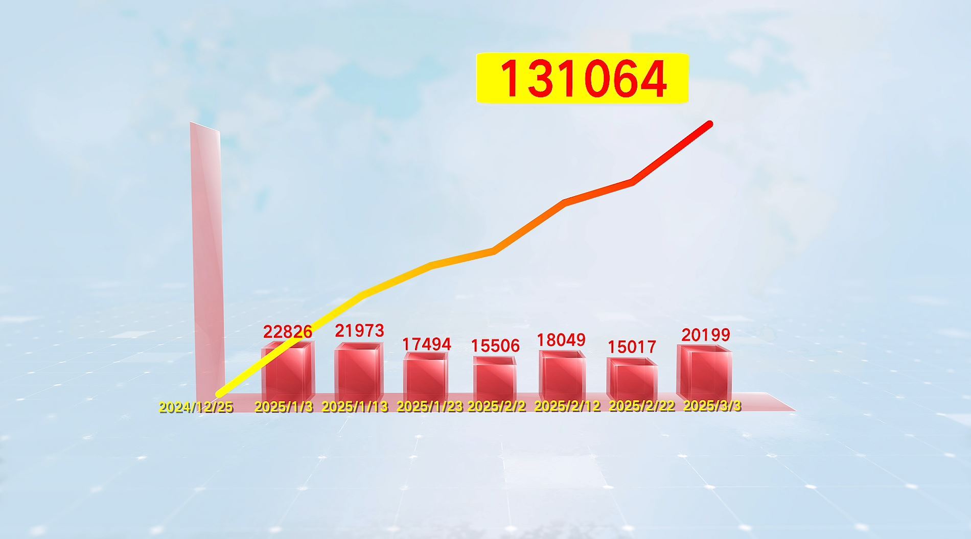 從去年12月25日全國兩會召開時間確定,到今年3月3日這個時間段,在對1000多家海外媒體的報道、200多個海外智庫的研究文章、5個海外社交媒體平臺的貼文以及50多個播客內(nèi)容進行大數(shù)據(jù)追蹤后,我們發(fā)現(xiàn),這一統(tǒng)計區(qū)間內(nèi)關(guān)注兩會的報道和文章總數(shù)達(dá)到了131064篇。