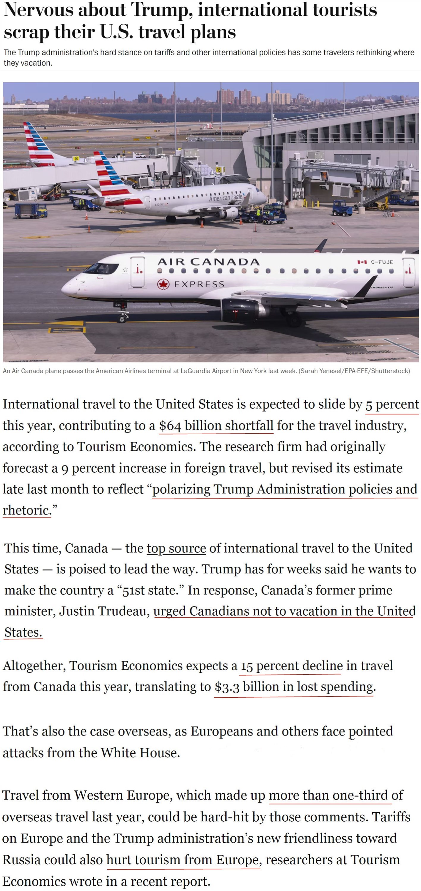 或許更讓美國始料未及的是,外國游客也被關(guān)稅“氣”跑了。