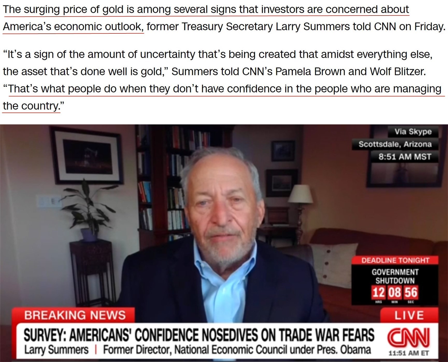 美國前財政部長勞倫斯·薩默斯在接受采訪時表示,特朗普反復(fù)無常的政策和言行正在侵蝕全球市場對美元的信任,金價的大漲正是這種不確定性的體現(xiàn)。