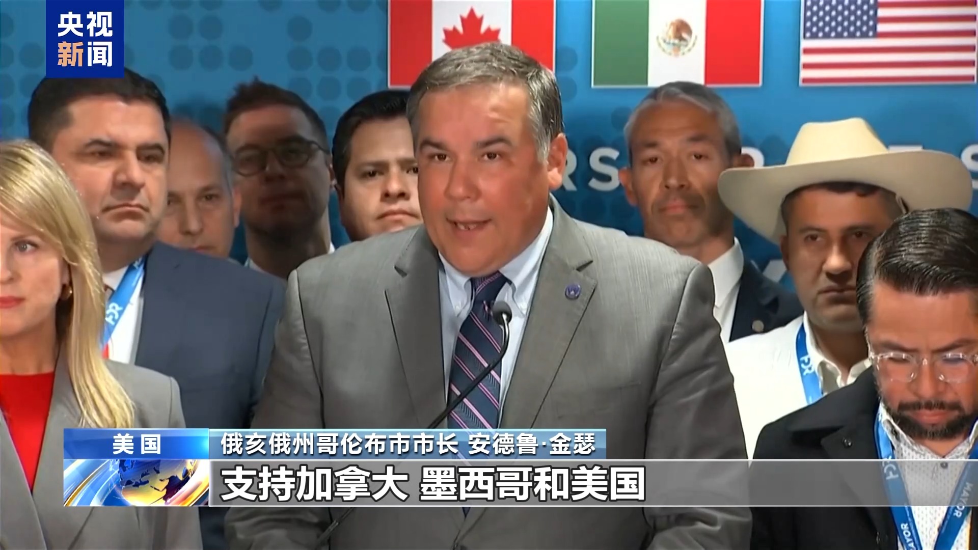 俄亥俄州哥倫布市市長 安德魯·金瑟:我們?nèi)龂虚L發(fā)表了一份聯(lián)合聲明,支持加拿大、墨西哥和美國之間的自由公平貿(mào)易。我們就美國加征關(guān)稅帶來的嚴重持久損害發(fā)出警告,呼吁結(jié)束貿(mào)易爭端。