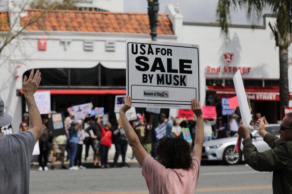 美國多地持續(xù)爆發(fā)反對馬斯克的抗議活動。據(jù)美聯(lián)社報道,3月29日,抗議者開始涌向位于新澤西、馬薩諸塞、康涅狄格、紐約、馬里蘭、明尼蘇達和得克薩斯等州的特斯拉門店,舉著“如果你討厭馬斯克就按喇叭”等標(biāo)語。