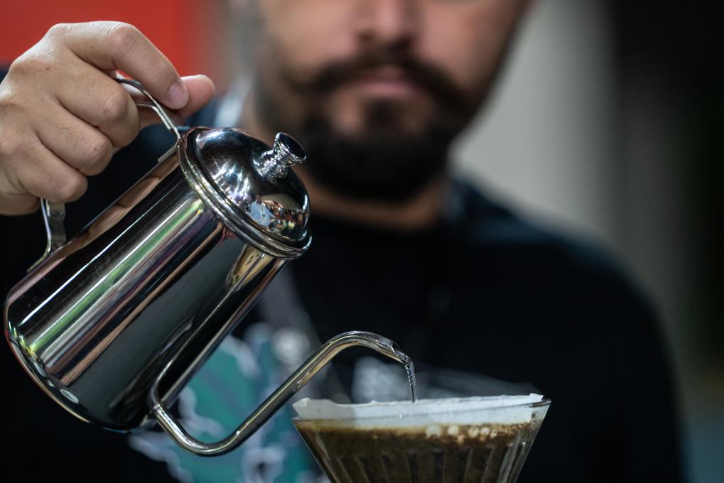 2023年11月9日,咖啡師在巴西貝洛奧里藏特舉行的咖啡周上制作咖啡。新華社記者王天聰攝