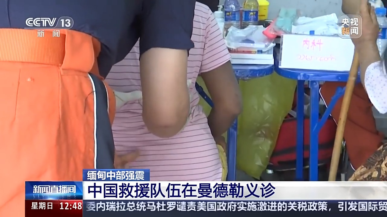 總臺央視記者 唐國榮:這里是緬甸曼德勒的多金堰地區(qū),來自中國救援隊、中國國際救援隊和中國香港救援隊的醫(yī)療隊員們,來到這里為緬甸地震中受災(zāi)的人員開展各種醫(yī)療救助服務(wù)。