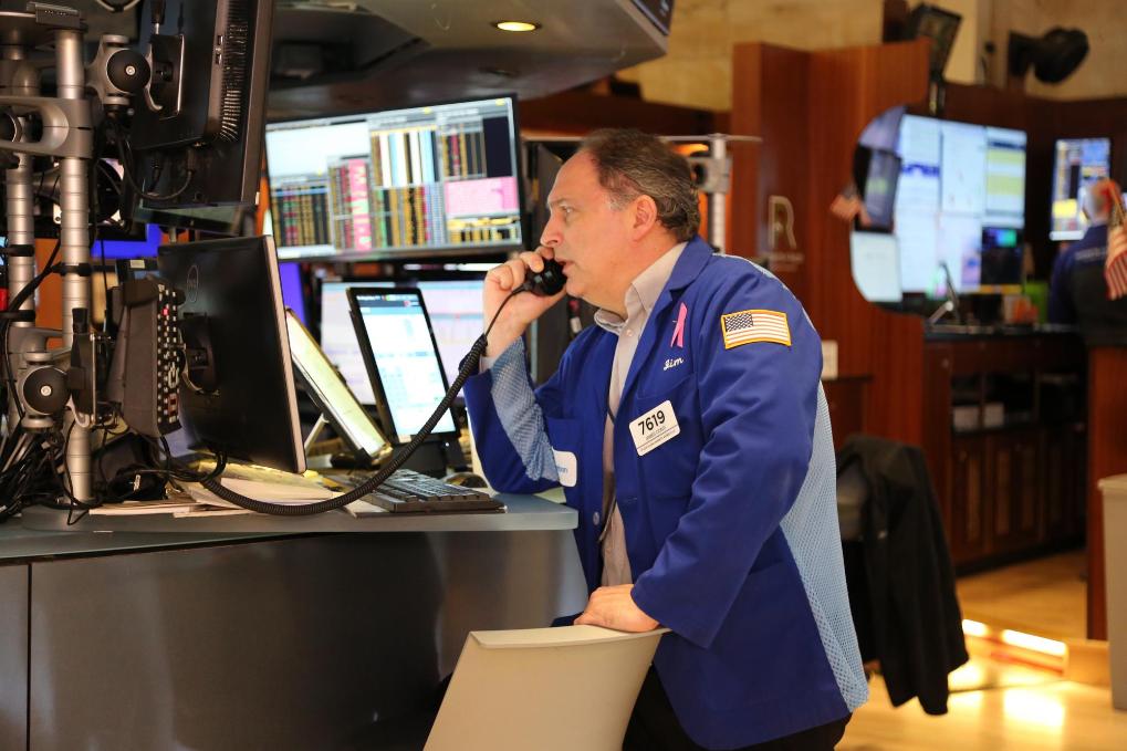 4月3日,交易員在美國紐約證券交易所交易大廳工作。新華社記者劉亞南攝