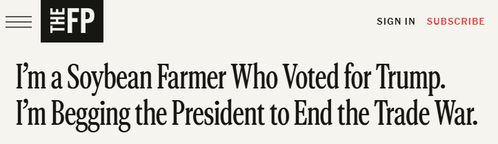 近日,拉格蘭德在The Free Press刊文表示,這場不斷升級(jí)的貿(mào)易戰(zhàn)對美國豆農(nóng)來說是個(gè)沉重打擊,因?yàn)橹袊瞧渥畲蟮暮M馐袌?。對于許多美國大豆種植戶來說,這仿佛是2018年噩夢般場景的重現(xiàn)。那是特朗普總統(tǒng)的第一個(gè)任期,其采取的關(guān)稅措施使美國農(nóng)業(yè)損失了260億美元,僅大豆產(chǎn)業(yè)就損失了近200億美元。