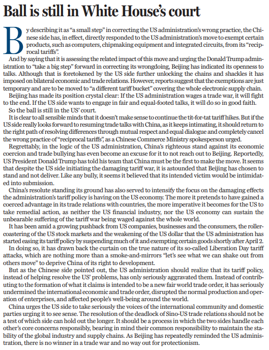 本文編譯自《中國日報》4月15日社論