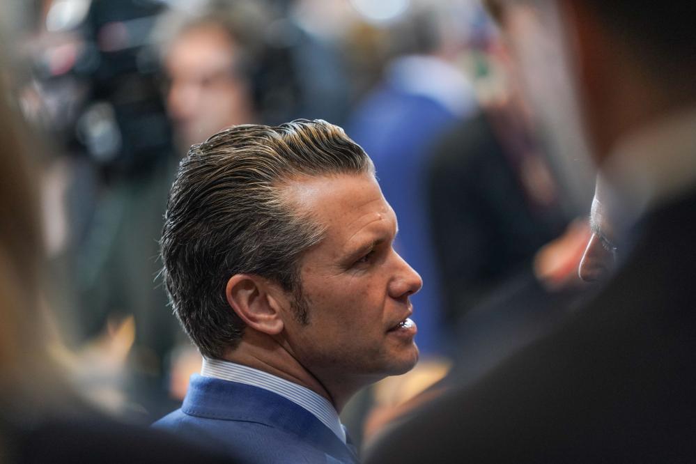 2月13日,在比利時(shí)布魯塞爾北約總部,美國國防部長(zhǎng)赫格塞思出席“烏克蘭防務(wù)聯(lián)絡(luò)組織”會(huì)議。新華社記者彭子洋攝
