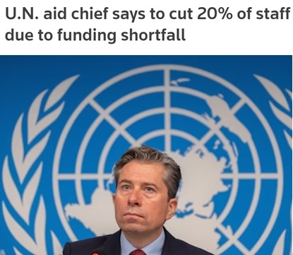 聯(lián)合國人道主義事務(wù)協(xié)調(diào)廳近日發(fā)表公開信說,由于資金遭遇“殘酷削減”,尤其是美國政府大幅叫停對(duì)外援助,該機(jī)構(gòu)將不得不裁撤20%、即500多名工作人員。