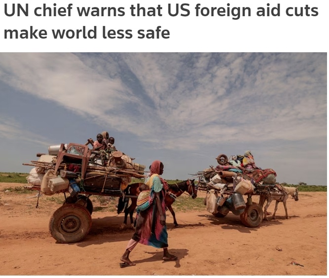 聯(lián)合國秘書長古特雷斯此前曾表示,美國大幅削減對(duì)外援助無異于一場(chǎng)人為制造的“人道主義地震”,將對(duì)世界上最弱勢(shì)群體造成嚴(yán)重傷害,不僅讓世界更不健康、更不安全,也有損美國自身利益。
