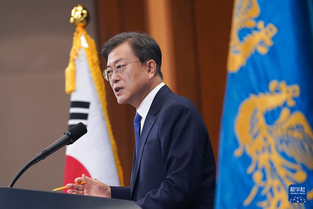 據(jù)韓聯(lián)社4月24日報道,韓國前總統(tǒng)文在寅因涉嫌受賄被檢方提起訴訟。這張拍攝于2020年5月10日的資料照片顯示,時任韓國總統(tǒng)文在寅在韓國首爾青瓦臺發(fā)表講話。新華社發(fā)(青瓦臺供圖)