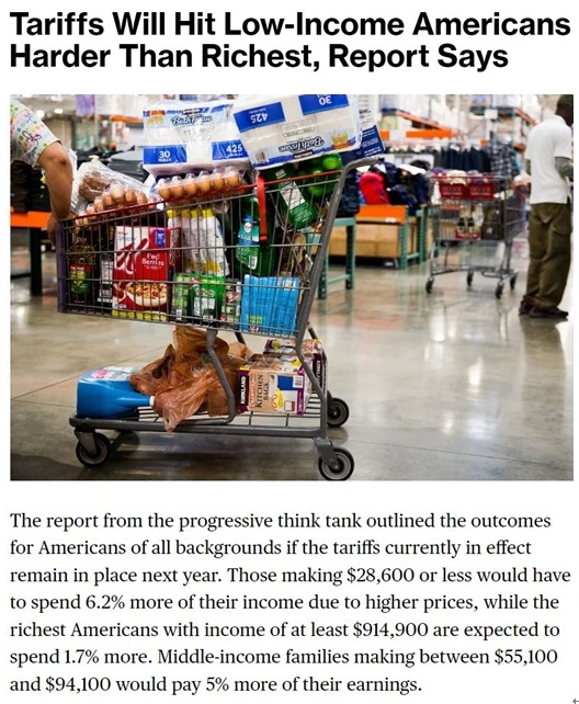 用耶魯預(yù)算實(shí)驗(yàn)室主任、白宮經(jīng)濟(jì)顧問委員會(huì)前首席經(jīng)濟(jì)學(xué)家厄尼·特德斯奇的話說,“美國(guó)低收入人群受到關(guān)稅的影響會(huì)更大”。