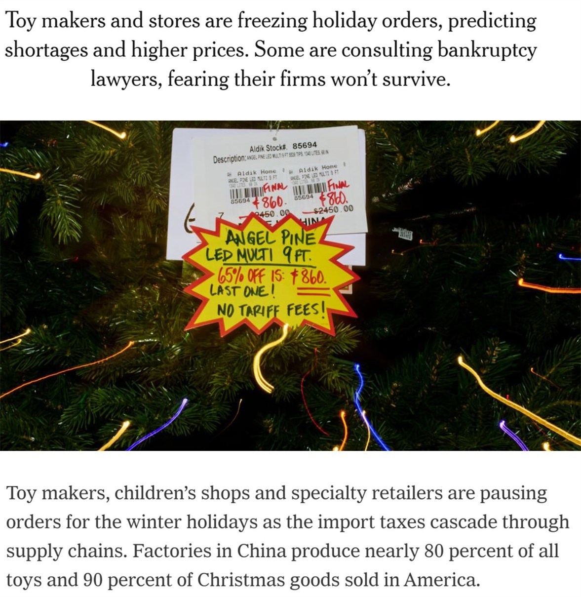 美國媒體和經(jīng)濟(jì)學(xué)家預(yù)計(jì),這不僅將導(dǎo)致今年美國節(jié)日季出現(xiàn)產(chǎn)品短缺和價格上漲,還將嚴(yán)重壓縮整個行業(yè)的利潤,甚至美國的節(jié)日產(chǎn)業(yè)都將“不復(fù)存在”。