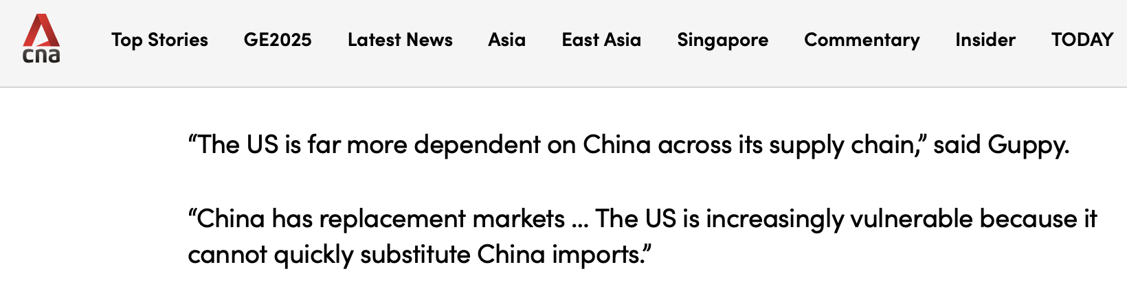 新加坡亞洲新聞臺的報道指出,中國在與美國的貿(mào)易談判中占據(jù)上風。報道援引分析人士的觀點稱,中國已轉(zhuǎn)向減少對美國市場的依賴,與全球南方國家建立更深層次的聯(lián)系,并通過共建“一帶一路”倡議投資基礎(chǔ)設(shè)施。