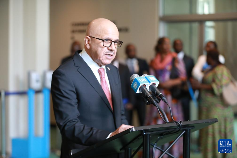 6月3日,在位于紐約的聯(lián)合國總部,巴林外交大臣扎耶尼在巴林當(dāng)選聯(lián)合國安理會非常任理事國后講話。新華社記者 謝鍔 攝