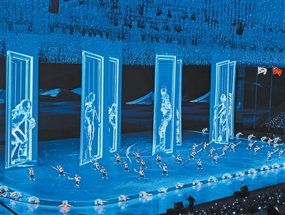 在哈爾濱第九屆亞洲冬季運(yùn)動(dòng)會(huì)開幕式上,巴可投影機(jī)呈現(xiàn)精彩的舞美效果。
