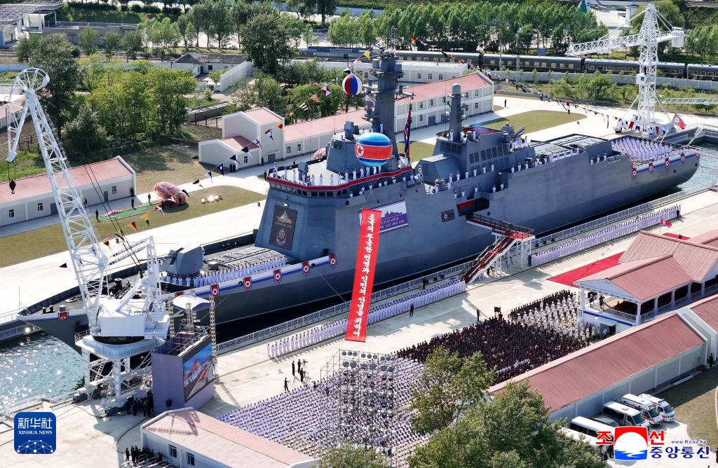 這是朝中社發(fā)布的朝鮮“崔賢”級(jí)二號(hào)艦下水儀式現(xiàn)場(chǎng)畫(huà)面。新華社/朝中社