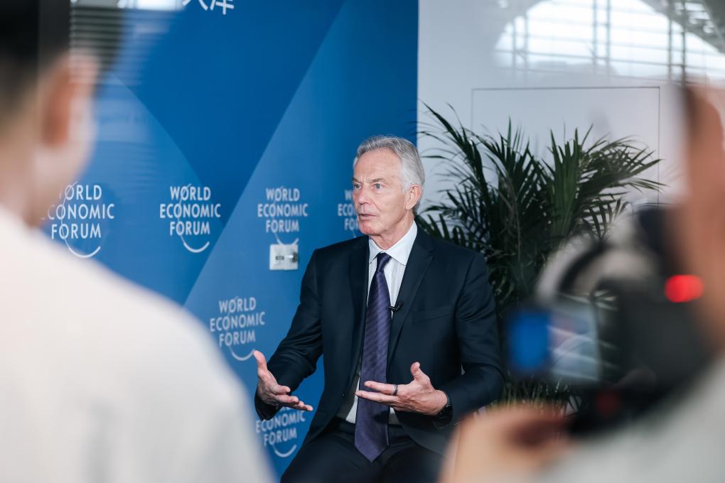 6月24日,英國前首相托尼·布萊爾在參加世界經(jīng)濟論壇2025年新領(lǐng)軍者年會(第十六屆夏季達沃斯論壇)期間接受采訪。新華社發(fā)