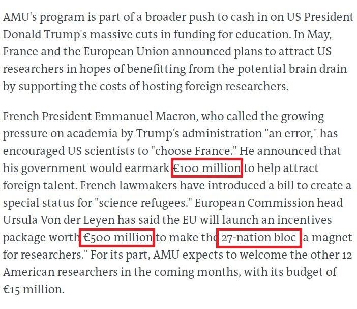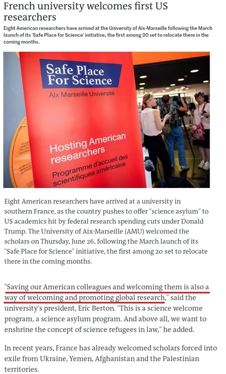 用艾克斯-馬賽大學(xué)校長(zhǎng)埃里克·伯頓的話(huà)說(shuō),“拯救并歡迎我們的美國(guó)同事也是促進(jìn)全球科研事業(yè)的一種方式”。