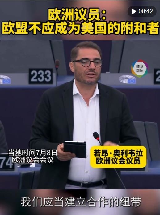 在8日的歐洲議會會議上,議員若昂·奧利韋拉在辯論中表示,歐盟不應(yīng)成為美國對華的對抗和緊張升級政策的“附和者”。他說,建立合作紐帶,實(shí)現(xiàn)互利共贏才應(yīng)是歐洲處理對華關(guān)系的基本態(tài)度。