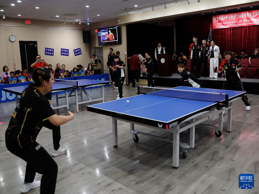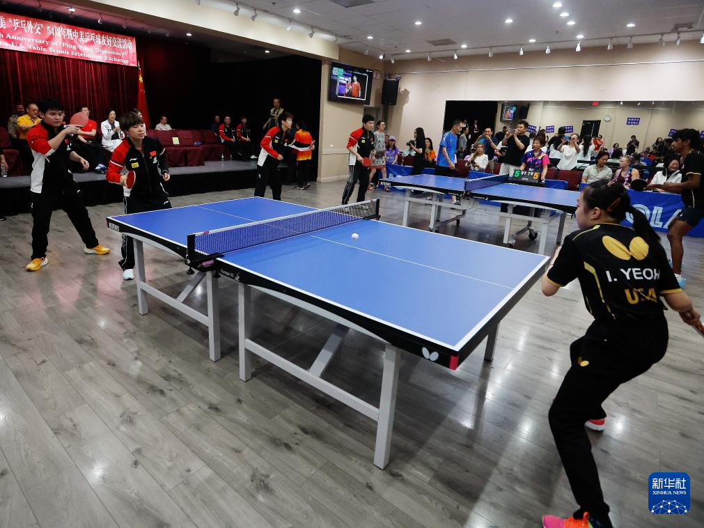 這是7月13日在美國內(nèi)華達(dá)州拉斯維加斯拍攝的紀(jì)念中美“乒乓外交”54周年暨中美乒乓球友好交流活動(dòng)現(xiàn)場。新華社發(fā)(邱晨攝)