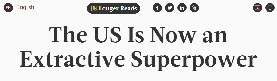 近日,世界報(bào)業(yè)辛迪加網(wǎng)站刊登一篇文章,標(biāo)題是《美國已經(jīng)成為一個榨取型的超級大國》。